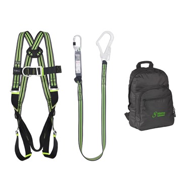 Each safety harness kit includes a safety harness, a fall restraint lanyard and connectors. Some also come with kit bags included.